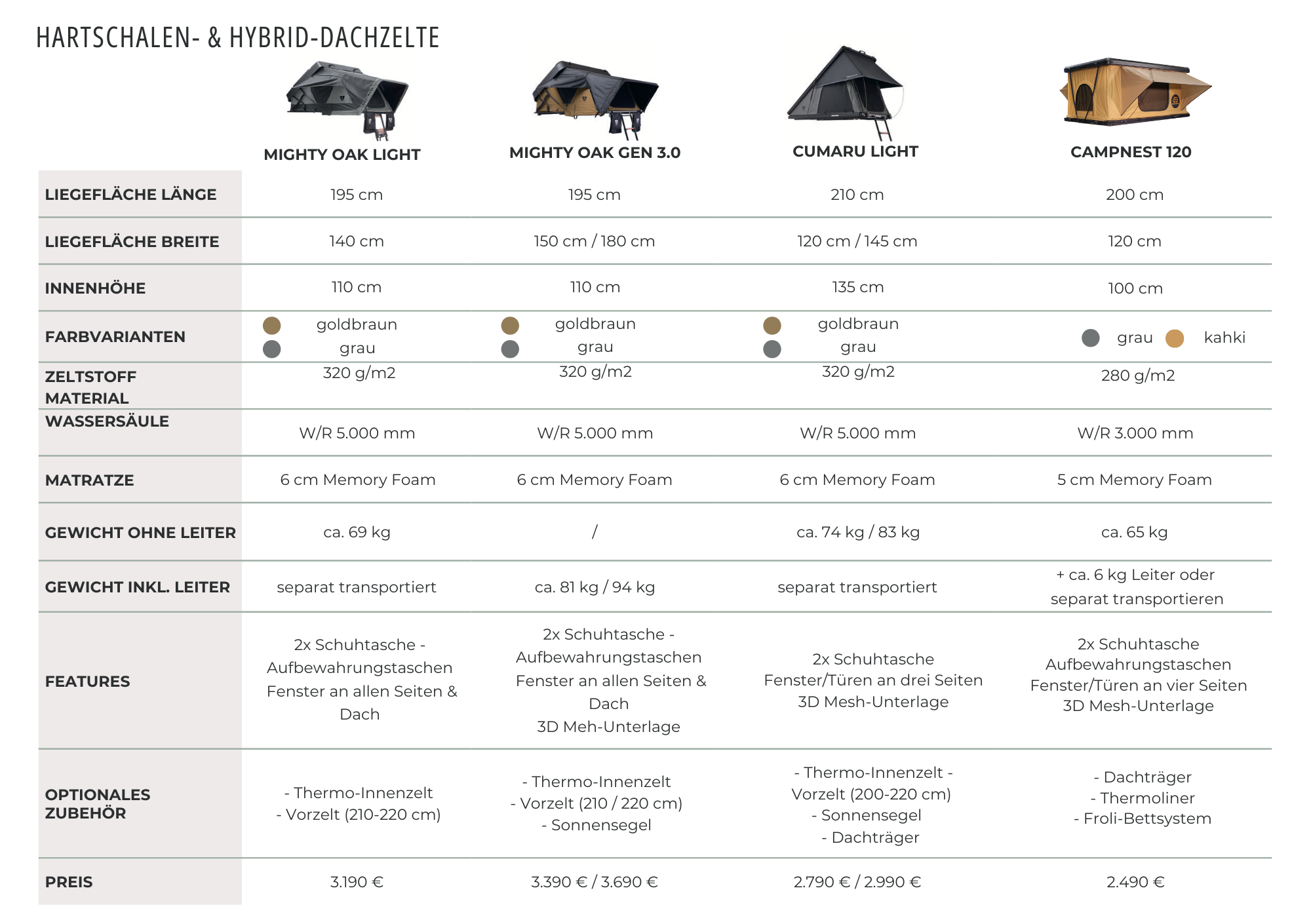 - Hybrid-Dachzelte, die Kombination aus Klappzelt und Hartschale