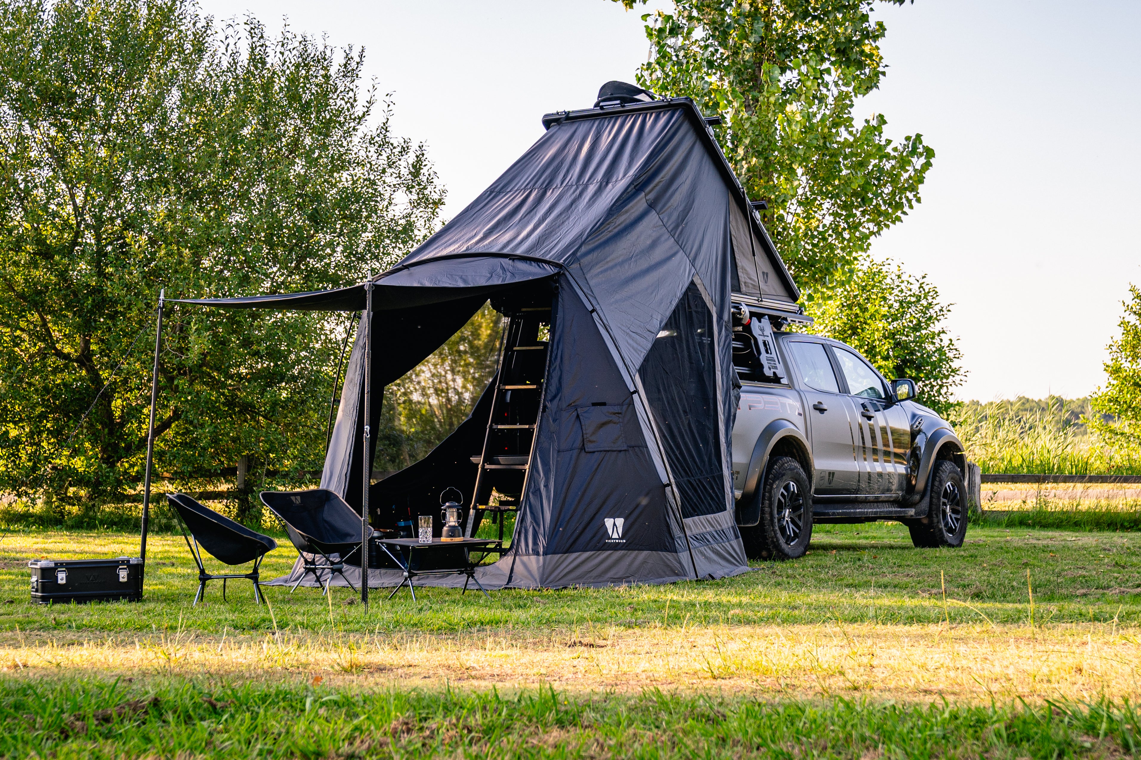 Für das CUMARU LIGHT gibt es eine große Auswahl an Zubehör: Von Vorzelt oder Sonnensegel über Thermo-Innenzelt und zusätzliche Dachträger, bis zu einer Teleskopleiter bis 260 cm für hohe Fahrzeuge ist alles optional verfügbar.